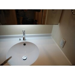 お施主様よりご連絡をいただき、ご自宅を確認に行ったところ、洗面台の収納部分はそのまま使用できることがわかりましたので、お施主さまご希望のカウンターのみの交換工事をご提案をさせていただきました。