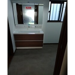 弊社でよく施工させていただくLIXILの洗面化粧台MVシリーズをご提案。フルスライド引出、三面鏡の鏡裏収納もできる、収納力第一優先です。