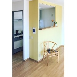 キッチンが独立型なので、リビングダイニングの様子が分からない。