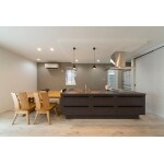 キッチンをメインステージへもっていくため配置をガラリと変えました。無駄に広かった玄関ホールを最小限にし、LDKをスタディコーナーを備えた大空間にしました。施主様より階段の壁を抜きたいとのご要望を頂き壁の下の壁を抜いた事で、ぐるりと回遊出来る導線の間取りとなりました。加古川店のトイレを気に入って頂き、手洗いカウンターを備えた、広くカッコいいトイレになりました。