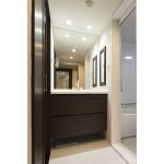 【洗面】スタイリッシュな天井と照明が映える洗面空間