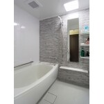 白基調の中にグレーの石調アクセントパネルが空間にシックな要素をプラスし、広々とした浴槽でゆったり一日の疲れを癒します。 水はけも良くて滑りにくい床など機能も備えて、毎日のお手入れも簡単に。