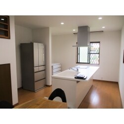 お施主様のご希望でもあったアイランドキッチンを設置し、家事動線がスムーズになりました。 またキッチンの隣の和室は畳を取り払い、キッチンとつながるフローリングへ変更。 これから長く暮らしていく事を考え、仕切りの扉は吊り戸にし、バリアフリーになるようご提案いたしました。