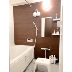 L社のリノビオを設置いたしました。 ウッド系のアクセントパネルを選択することで、お洒落な雰囲気になりました。 また、その他の箇所をシンプルな仕様にすることでリーズナブルな価格で入れ替えることができました。 清掃性も以前より格段にアップしており、お掃除しやすいお風呂になっています。