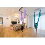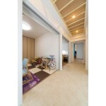 家族が集まるリビングダイニングは、広々として開放的な空間。 ドアで仕切れるプライベートスペースには、エアリアルヨガが楽しめるようになっています。