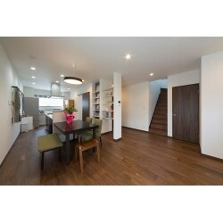 団らんしにくかったリビングをキッチンと反転し、廊下やホールをLDKに取り込み、広々としたLDKにしました。 細長い間取りにキッチンとダイニングテーブルを配置するために、ダイニングテーブルを造作しました。 また、凹凸のあるお家の形を整え、収納を増やしました。