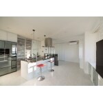 ストーンを贅沢に使ったハイカウンターを造作した対面式キッチン