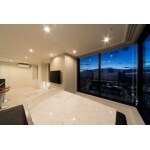 間接照明で、やわらかな光を演出するリビング、ペットドア付!