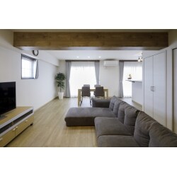 ・物件探しの時の図面には、作成したリノベーションプランも付けてお渡ししました。また、事例集を常に携え、たとえば梁がでる物件であれば梁をアクセントクロスにした写真を見せるなど、「住まいのプロ」として細かなアイデアをその場でご提案しながらご案内を進めました。 ・リノベーションに対して「こうしたい」というイメージをすでにお持ちだったため、限りあるスペースの中でそれらを実現できるよう熟考し、一つひとつ形にしていきました。 ・キッチンをご希望の位置にすると梁をまたいでしまうため、ダクトの方向は、解体後に再調査と検討を重ねて施工しました。