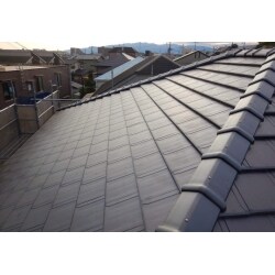 屋根のひび割れや色褪せがひどく美観の回復をご要望だったので、耐久性があり現状と大きく見た目が変わらないよう陶器平板瓦を提案しました。 シャープな見た目ながら重厚感があり、お客様にもご満足いただくことができました。