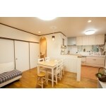 収納を撤去してキッチンとつながりをもたせた、開放的なLDKです。 ダイニングとの間にカウンター兼収納を置くことで、配膳もコミュニケーションも以前よりしやすくなりました。
