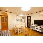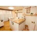 収納を撤去してキッチンとつながりをもたせた、開放的なLDKです。 ダイニングとの間にカウンター兼収納を置くことで、配膳もコミュニケーションも以前よりしやすくなりました。 水廻りは、脱衣スペースと洗面所を分けて間取りを変更。家族がそれぞれの設備を使っていても、気にすることなく個々のプライバシーを守ります。 またダイニング横の腰パネルやアーチの開口、無垢の面材を使用したキッチンなど、以前にも増して明るく、ナチュラルカントリー調のやさしい雰囲気で統一感を出しました。 外廻りは、使用していなかった門扉を撤去し開放的に。動線をスムーズにした アプローチと玄関ドアが南欧風の雰囲気を演出しています。