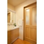脱衣スペースと洗面所を分けて間取りを変更。家族がそれぞれの設備を使っていても、気にすることなく個々のプライバシーを守ります。