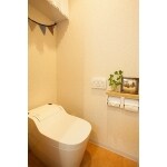 【新築】デザインタイル貼りのさわやかなトイレ/左官仕上げ