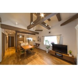 アクセントに天井へ化粧梁を組み込んだ光溢れるLDK