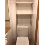 コロナショックでウォシュレットが品薄になり、TOTOでは発注停止になっていましたが、奇跡的に最後の1台を確保でき、工事をさせていただきました。壁はご要望のキッチンパネルを使用し、パイプが見えないよう弊社大工がきれいに造作して仕上げました。収納棚の設置工事は可動棚として、使い勝手が良くなるように仕上げました。