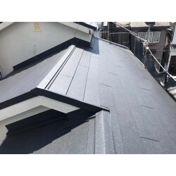 工事が終わり、見た目も綺麗に仕上がりました。 屋根だけ見ると新築の建物のようです。 スーパーガルテクトは金属屋根材の為、カビ・コケも生えにくく、美観も維持できます。