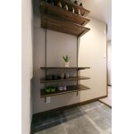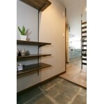 無垢材の棚板と珪藻土塗り壁のシューズインクローゼット