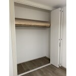 流行りのグレーを大きく取り入れ、フレンチモダンな印象のお部屋をご提案させていただきました。 お手入れが簡単で、水に強く、ペットの爪によるキズも目立ちにくいクッションタイルを採用。 押し入れを撤去し、クローゼットとすることで、使いやすさもアップしております。