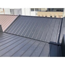 築年数もかなり経過していた為、屋根葺き替え工事のご提案をさせて頂きました。 工事前は瓦屋根とトタン屋根に分かれておりましたが、切妻屋根ということもあり、立平葺きで統一して仕上げるかたちでご提案させて頂きました。