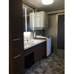洗面化粧台と隣の収納を一緒に取り替えて、高級感の出る扉カラーで合わせるご提案をさせて頂きました。 洗面脱衣室の内装も洗面化粧台と浴室に合わせてご案内させて頂きました。