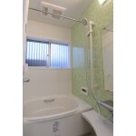 アクセントパネルをグリーンリーフとし、清潔感あふれる浴室が完成致しました。 キレイサーモフロアを採用し寒い冬場でもヒヤッとしない構造になっております。 窓から日差しも差し込み、ナチュラルな雰囲気になりました。