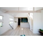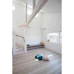 見せ梁と表情豊かな床の木目で、落ち着く自然な風合いのリビングがあるお住まいに仕上げました。 天井付近の窓から柔らかな光が差し込み、明るく開放感のあるスペースです。