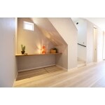 階段下をワークスペースに。断熱がしっかりしたお住まいならではですが、ちょっと家族と離れて考え事をしたいときや、リモートワークなどに。 1Fホールの一番奥に設置されているため、家族の動きがあってもカメラへの写りこみなどがなく、安心してリモートワークができます。