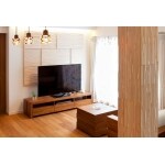 化粧柱がアクセントの銘木ブラックチェリーに癒されるリビング