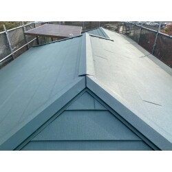 雨漏りの原因が部分的ではなく、屋根全体の経年劣化によるものであった為、補修工事での修繕は難しく、屋根葺き替え工事をご提案させて頂きました。 屋根重量を気にされておりましたので、軽くて耐久性の高い、スーパーガルテクト(ガルバリウム鋼板屋根材)をご提案させて頂きました。