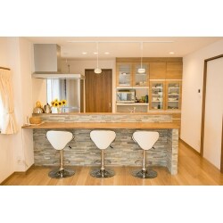 息子さん世帯のLDKは、キッチンスペースに大きなパントリーを作り、スッキリ収納ができました。 対面キッチンにし、カウンター付きで作業しやすい動線になりました。