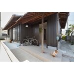 和風の趣がある外装は、テーマでもあるインダストリアル風の角波を使用し、カッコよく! 内部にはガラッとテイストをかえ、優しさのあるインダストリアル風に! アイアンで入れた窓と紺色のドアがポイントです!