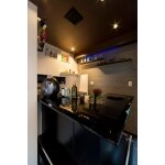 プライベートバーは、一転ダークな夜のイメージで、カウンターバーを作り棚サイズを高さを現場にて打ち合わせ、詳細を決定しました。電気もメインキッチン以上に設置し、ご主人様とご友人のくつろぎ空間となりました。