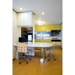 ご両親から譲り受けた築25年の住宅は、DK、和室、洋室と各部屋が細かく区切られており、ご家族でゆったりと寛ぎの時間を過ごすには使いにくい間取りでした。今回はご夫婦の憧れでもある、広いLDKをつくりたいと言うご希望により、リフォーム計画がスタートしました。 6帖のDK、和室、洋室を繋げ、18帖の広いLDKにし、LDKの一部はご主人の強い希望でもあったホームシアタールームとするプランをご提案しました。また老朽化したキッチンも取り替え、お料理上手な奥様が存分に腕を振るい、お料理を囲んでご家族の絆を深めていただけるようLDKの中心に人工大理石のテーブルを設置する案を提案させていただきました。 LDKというひとつの空間にご夫婦お二人それぞれの希望を取り入れました。シアタールームとダイニングとの間に格納できる3枚引戸を取り付け、格納すると18帖の広さを充分に感じられるスペースとなりました。