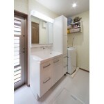 空間に溶け込むトータルコーディネイトされた洗面スペース。ホワイト系で統一され、窓からの採光量をありとても明るくなりました。