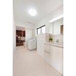 リビングとの繋がりを大切にしたスタイリッシュな洗面脱衣室