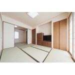 壁いっぱいに設けたクローゼットで収納力抜群の和室