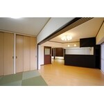 N様は、築後30年以上が経過したマンションにお住まいです。息子様がお二人とも独立されるのを機に、ご夫婦と娘様の三人での生活がスタートします。専有部分全体が変形で、さらに6帖の和室が4部屋という細かな間仕切りが不便で、使いやすい間取りにリフォームしたいとのご相談をいただきました。ご夫婦のご希望で、娘様のお部屋をメインにプランニングしました。あえて変形にお部屋をレイアウトすることで、お部屋自体の広さを確保して、隣接するLDKを、約28帖の広さを持つ使いやすいカタチとすることに成功しました。また、LDKの一部に開閉できる間仕切りを設置。息子様達が帰省された時は、間仕切りを閉めて、2部屋の寝室が出来上がります。LDKに設置した2ヶ所の開閉間仕切りは、全て開け放すとLDKが約28帖に、さらに隣接の和室を含めると、最大34帖の広々とした空間に変身します。窓から入る自然光も部屋全体に行きわたり、広さと明るさが共存する開放的な空間に生まれ変わりました。変形の間取りを活かしたプランを練り上げて、お客様と何度も打合せを重ねた結果、素晴らしいスケルトンリフォームが完成しました。