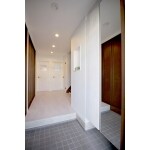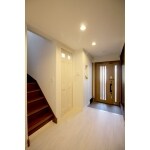 明るく広々とした玄関ホールです。 玄関ホール内の既存クローゼット扉に近い色合いの玄関ドアをチョイスし、統一感を出しました。