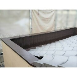 【施工前】 屋根の漆喰(瓦と瓦の間の白い部分)が劣化し、中の盛土が見えてしまっているところがありました。