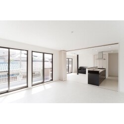 キッチン横の間仕切りを閉じれば孤立したリビングに。 家具はこれからおいおい揃えていくとのことで、現状広々した空間になっていますがこれからどんなお部屋になっていくか楽しみです。