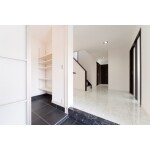 玄関から一歩入ると真っ白なフロアがお出迎え。 ピカピカの大理石風タイルがホテルライクなお住まいに誘います。