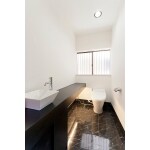 中古物件購入で水廻りの改装を希望。 木目や自然素材の雰囲気があまり好みではなく、シャープでモダンなイメージにしたい。