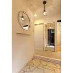 クラッシュグラス柄が映えるリゾートホテル風サニタリールーム
