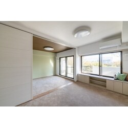 間仕切り壁を取り払い、用途によって使える事ができるように間仕切り引き込み戸を取付けました。扉を閉めればプライベートのお部屋として使うこともできます。 お部屋全体が明るく、広くなりました。