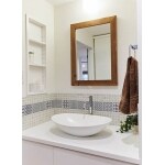 タイルがアクセントになった造作洗面化粧台をご提案させていただきました。