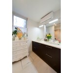 浴室・洗面がゴージャスホテル仕様。誰もがうっとりするような最新設備です。 お部屋が広く、高く見える照明計画を行いました。