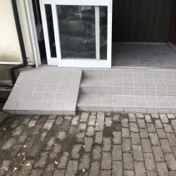 風除室内の同じようなタイルを使用し違和感なく仕上げました。