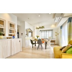 お子様の成長によりお引越しを考え、中古を買って自分たち好みのインテリアにしたいというお客さま。 今は、家族3人でゆったり過ごせる空間を、将来的には家族が増えても使いやすい間取りにしたい。 何よりも好きな「色」を家中にちりばめたインテリアをご希望でした。
