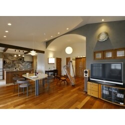 ご夫婦のお話をヒアリングして担当デザイナーが真っ先に思い浮かべたのは、奥さまのご要望である演奏会の出来るスペースでした。 廊下部分をリビングに取り込み、まずはスペースを確保。高い斜めの天井をそのまま活かして、優雅なアーチ型天井を作りました。 マンションにお住まいのため、防音対策もしっかりと施し、気兼ねなく演奏を楽しむことができるようになっています。 おふたりの生活をより充実したものにするため、様々なところに「心地よさ」の工夫をちりばめています。 「木や自然素材は利用して進めたい」とお話されていたので、珪藻土や木のマテリアルをたっぷりと使用。 フローリングは深い色味が美しいアッシュを選びました。